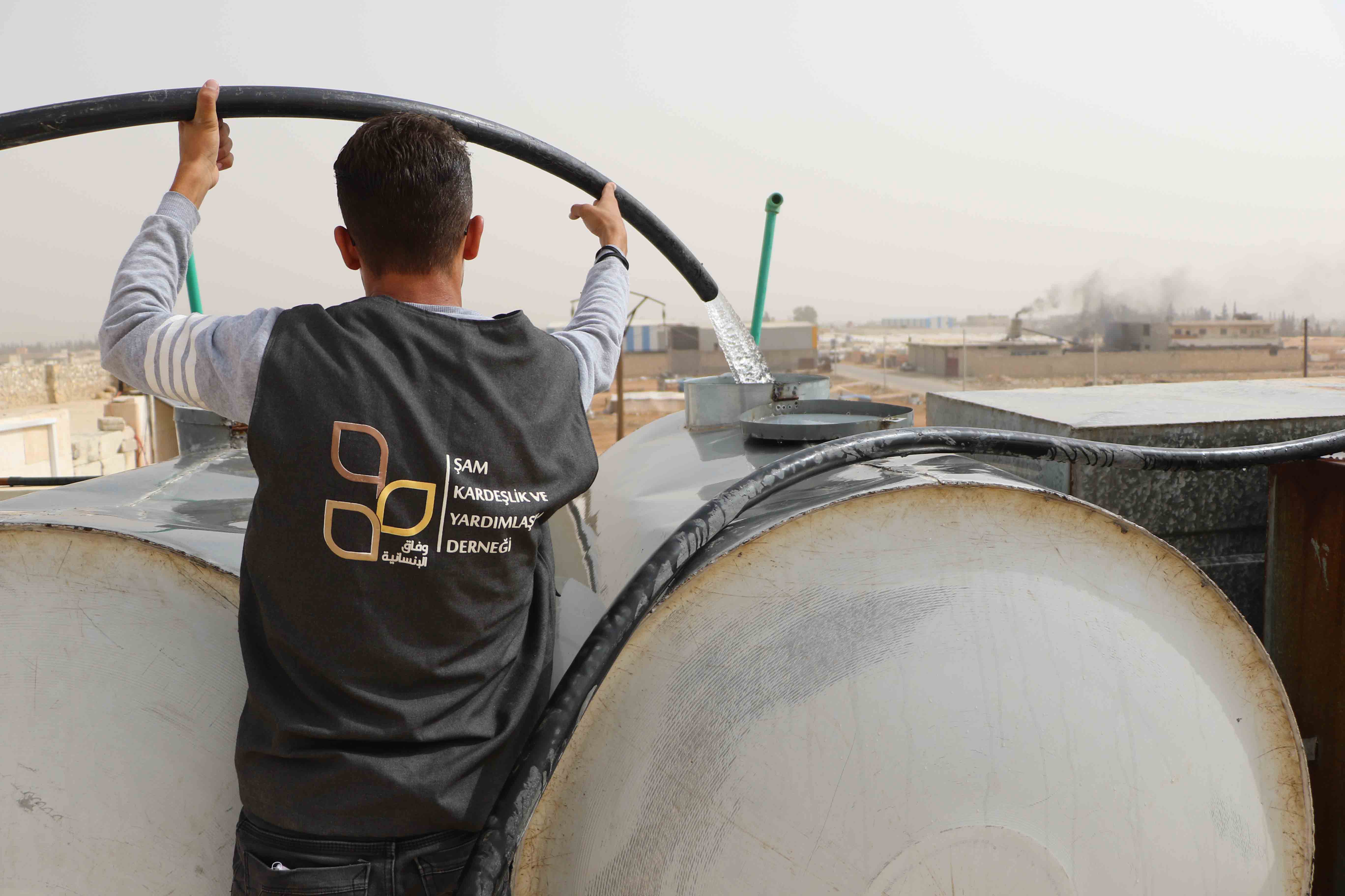 Bu doğrultuda derneğimiz, su ve sanitasyon projeleri aracılığıyla kriz bölgelerinde yerinden edilen kişilere ve kamp sakinlerine destek sağlamaktadır. Çoğu zaman ücretsiz su temini gerçekleştirirken, bazı bölgelerde artezyen kuyuları açarak büyük yerleşim alanlarına su ulaştırmaktadır. Ayrıca, bazı projelerinde büyük su depoları inşa ederek suyun çevredeki kamplara daha kolay taşınmasını sağlamaktadır.