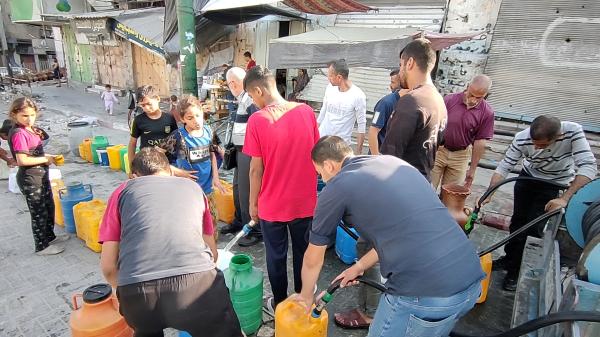 في ظل توقف محطات تحلية المياه وانقطاع مقومات الحياة الأساسية في قطاع غزة, نستمر بتقديم صهاريج المياه الصالحة للشرب في نقاط ومراكز أيواء مختلفة بشكل يومي لتخفيف معاناة السكان من البحث عن المياه